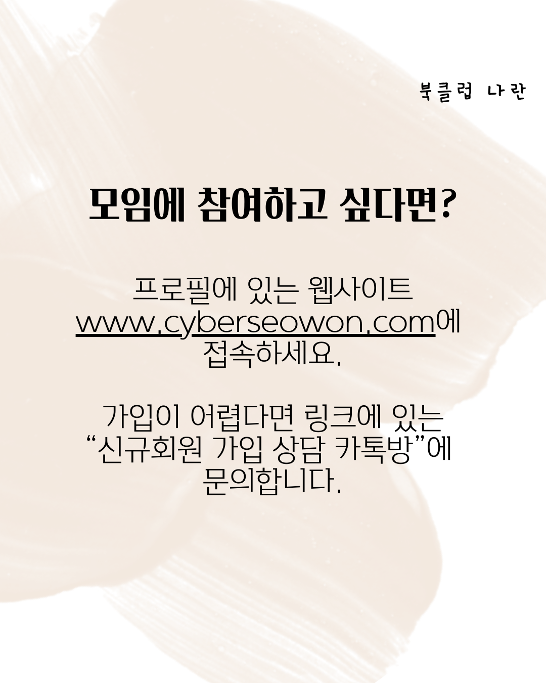 북클럽 나란은 비영리 단체로 여러분들의 자발적인 참여가 필요합니다. 운영진으로 활동하기 원하시는 분들은 @바람에게 DM을 주세요.