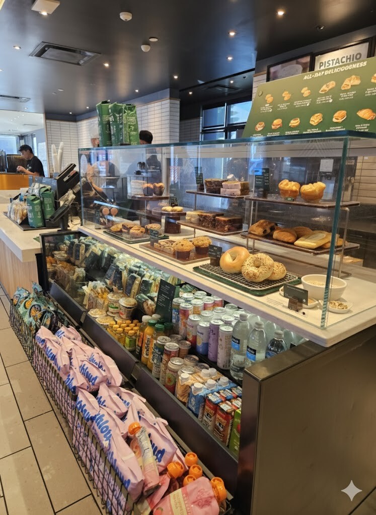 단순히 메뉴판만 보여주는 게 아니라, 고객의 시선이 머무는 곳에 '추가 구매'를 유도하는 상품(주스, 요거트, 스낵)을 배치하는 것만으로도 객단가를 확실히 높이는 효과를 내고 있었습니다.