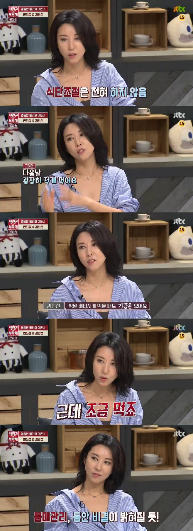 김완선은 "46kg 정도를 유지한다"며 "먹고 싶은 걸 다 먹는다. 먹고 싶은 거 내가 좋아하는 걸 맛있게 먹는데 조금 먹는다. 배 터지게 먹을 때도 가끔 있는데 그러면 그 다음날 굉장히 적게 먹는다"고 답했다.
