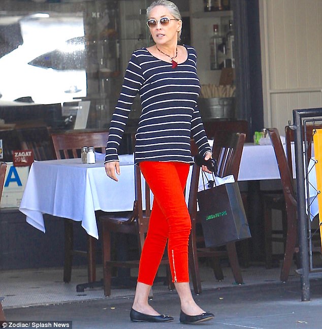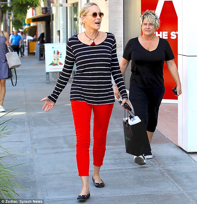 빨간바지 입고 점심 투고해가는 59세의 샤론스톤