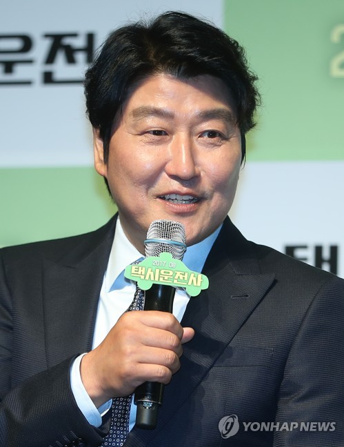 배우 송강호가 20일 오전 서울 강남구 신사동 압구정CGV에서 열린 영화 '택시운전사' 제작발표회에서 취재진 질문에 답하고 있다. 2017.6.20 ryousanta@yna.co.kr