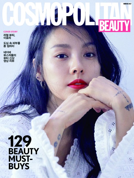 이효리의 화보와 뷰티 팁은 코스모폴리탄 뷰티 3월호에 실렸다.