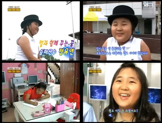 정 씨는 2006년 방송된 ‘보니하니’의 ‘도전! 작은거인’이란 코너에 승마 유망주로 소개됐다. 당시 11세로 서울 경복초등학교 재학 중이었던 정 씨는 개명 전 이름인 정유연이란 이름으로 등장했다. 마장마술을 연습하는 모습이나 교내 방송국 아나운서로 활약하는 모습 등을 담고 있다.