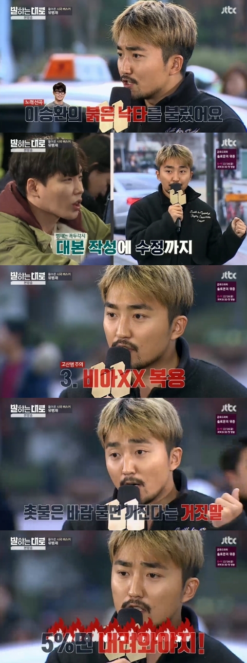 유병재는 "5%면 산에서 내려와야지. 고집 피우지 말고 5%면 내려와야지!"라고 말한 뒤 "이건 거짓말 아니다"고 말했다. 이는 박근혜 대통령의 5%대 지지율을 언급한 것. 하하와 유희열 역시 "그 5%가 그 5%냐"고 말하며 감탄을 금치 못했다.