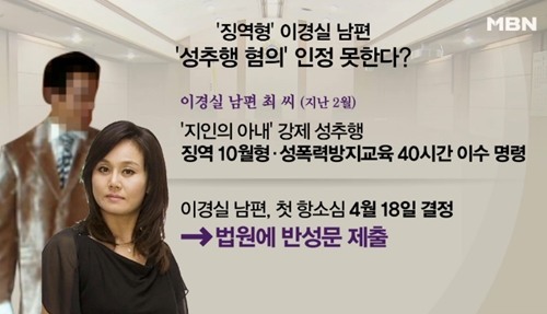 이경실의 남편 최 씨는 지난해 8월 지인들과 술을 마시고 30대 여성 A씨를 집에 데려다주겠다며 자신의 뒷좌석에 태운 후 성추행한 혐의로 재판에 넘겨졌다. 최씨는 당시 만취상황이었던 것을 참작해 심신미약에 의한 법률로 인한 양형이 부당하다며 항소심을 제기했다.