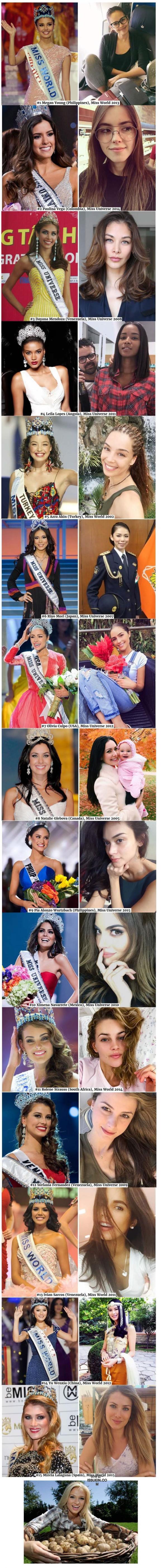 미인대회 우승자들의 일상 사진.