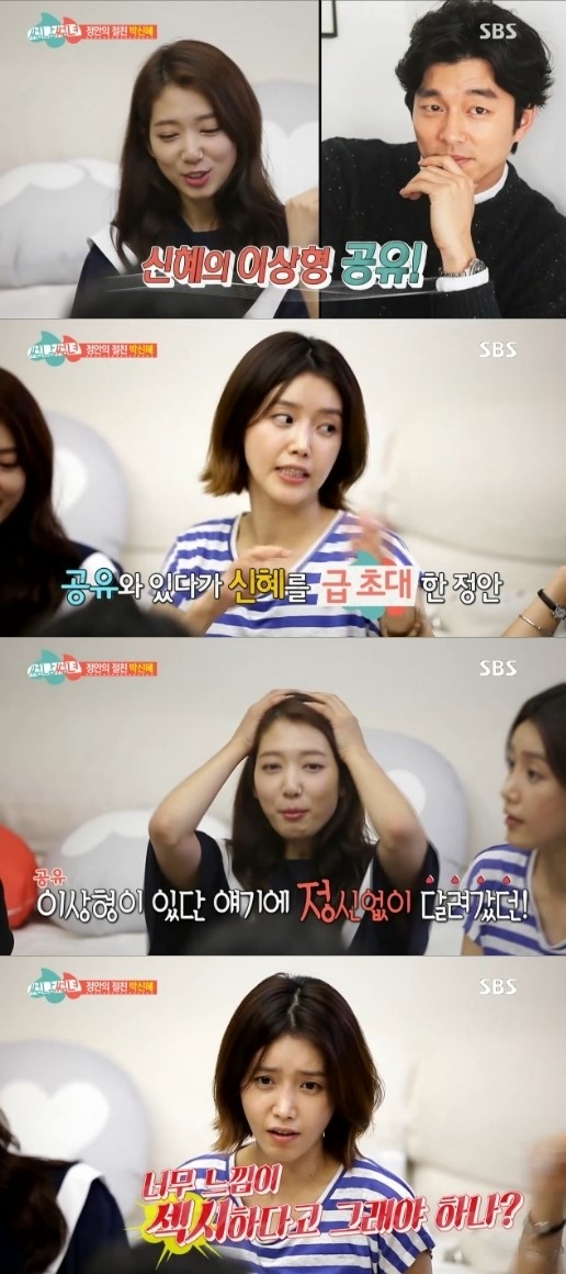 이어 채정안은 늘 동생같던 박신혜가 여성스러워 보였던 시기가 있었다 밝히며 "박신혜 이상형이 공유였다. 어느 날 공유와 함께 있을 때가 있어서 박신혜를 불렀다"고 말했다.