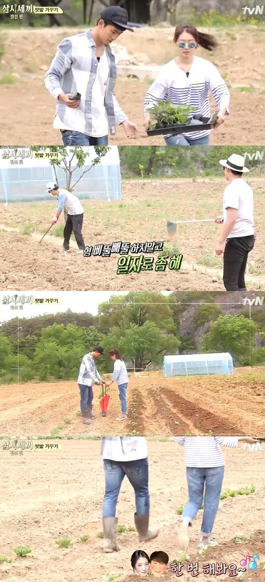 29일 방송된 케이블채널 tvN '삼시세끼' 정선편 3회에는 본격적으로 텃밭을 가꾸는 이서진, 옥택연, 김광규와 게스트 박신혜의 모습이 그려졌다.