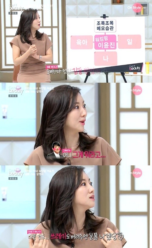 13일 오후 방송된 케이블채널 온스타일 '겟잇뷰티'(Get it beauty)에서 이윤진은 '워킹맘의 육아법'이라는 주제로 조언을 건넸다.