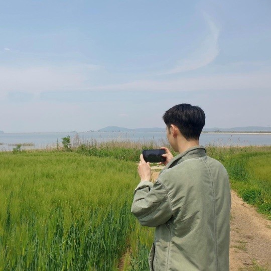14일 배우 이제훈은 자신의 인스타그램에 "청보리밭 앞에서 :)"라는 글과 함께 두 장의 사진을 게재했다.