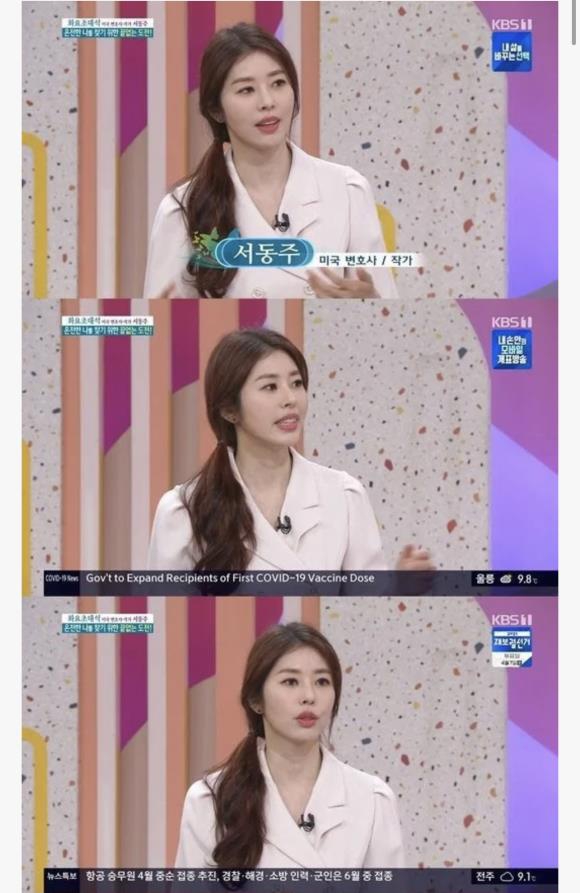서동주는 “새벽에는 주로 미국 블록체인 회사의 마케팅 일을 하고 있다. 낮에는 로펌에서 변호사 일을 한다. 방송이 있으면 방송도 하고, 저녁에는 책 쓰는 일도 한다. 유튜브도 시작해서 시간 날 때마다 편집을 하고 있다. 여러 가지를 함께 할 때 에너지를 받는 편이다. 하지만 주변에서는 본업에 충실하라고 걱정을 하는 편이다”고 바쁜 근황을 밝혔다.