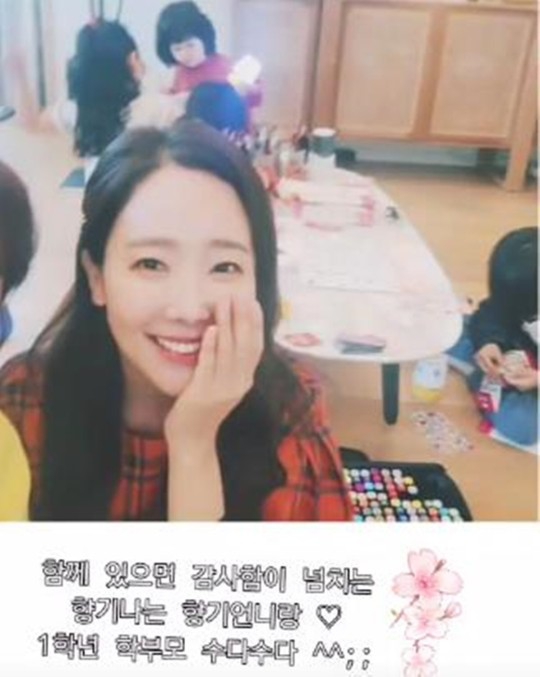 소유진은 31일 인스타그램 스토리에 "함께 있으면 감사함이 넘치는 향기나는 언니랑 1학년 학부모 수다수다"라는 글과 사진을 게재했다.