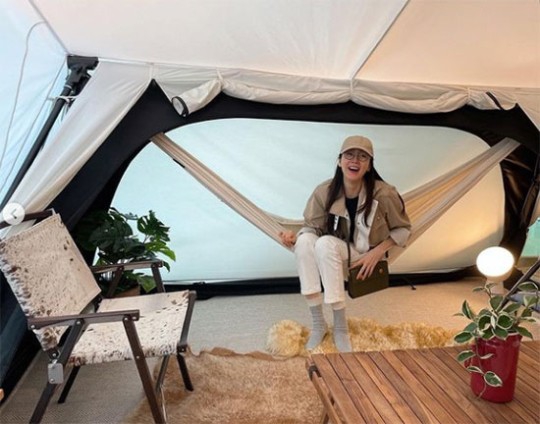 공개한 사진에는 반려견과 캠핑 카페를 즐기고 있는 최지우의 모습이 담겼다. 모자와 봄자켓으로 캠핑 분위기를 낸 최지우는 텐트 속에서 해맑은 미소를 보내고 있다.