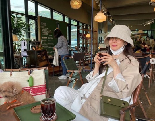 12일 최지우는 자신의 인스타그램에 "캠핑대신 캠핑카페"라는 글과 함께 사진을 게재했다.