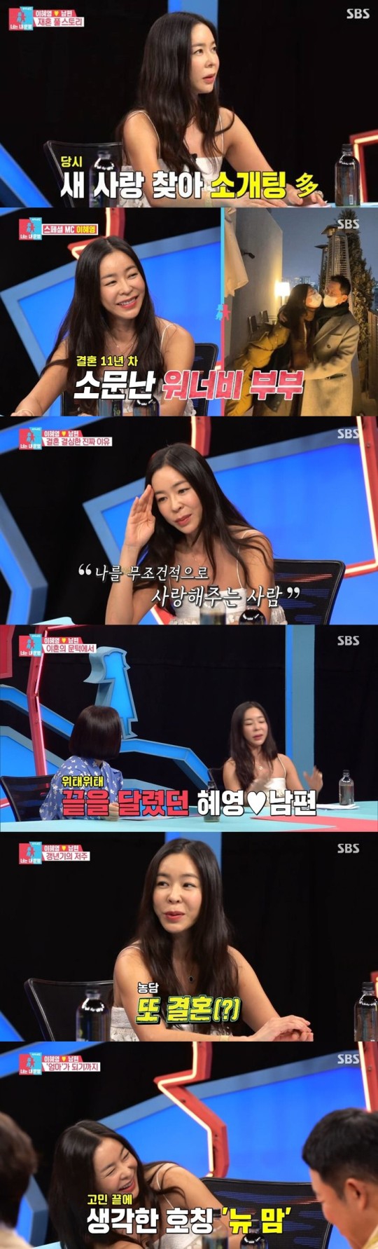 이혜영은 1살 연상의 사업가와 결혼, 벌써 11년째 결혼생활을 하고 있다. 그는 "나한테 첫눈에 반할만 했다. 내가 예뻤다. 아파서 많이 마르고 청순해보였다"며 남편과의 첫 만남, 연애 시절을 언급했다.