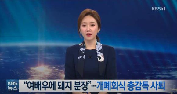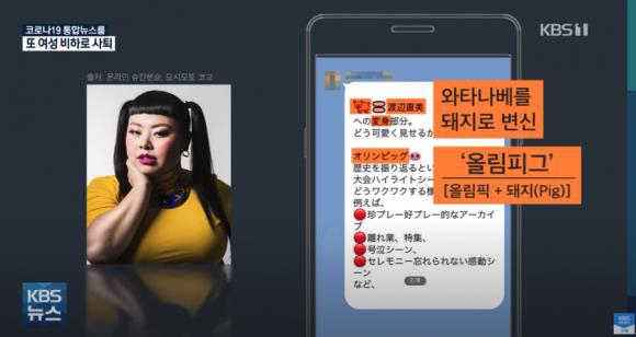 와타나베 나오미라는 일본 여배우를 돼지로 분장시켜 연기하게 한다는 개회식 연출안을 단체 채팅방에서 팀원들과 공유했다는 겁니다.