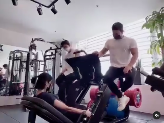 동영상에서 유이는 헬스장에서 레그프레스머신으로 하체운동을 하고 있는 모습이다. 특히 유이는 건장한 성인 남성 두 명이 올라가 있는 레그프레스머신을 가볍게 올리고 내려 놀라움을 자아낸다.