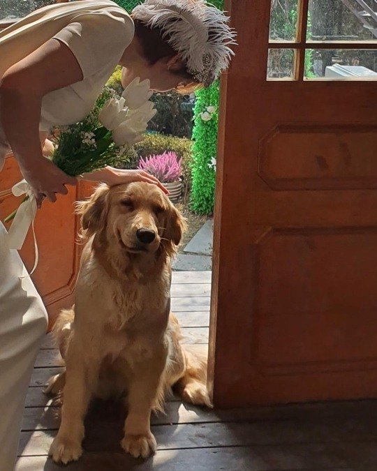 공개한 사진 속 김성령은 군더더기 없는 웨딩드레스를 입고 있다. 흰색 깃털 모양의 머리 장식과 손에 든 부케는 웨딩드레스를 입은 김성령의 화사한 분위기를 한층 빛나게 만들었다. 김성령은 함께 촬영 중인 강아지를 만지며 밝게 웃었다. 이처럼 드레스를 완벽하게 소화한 김성령의 모습은 팬들의 마음을 사로잡았다.