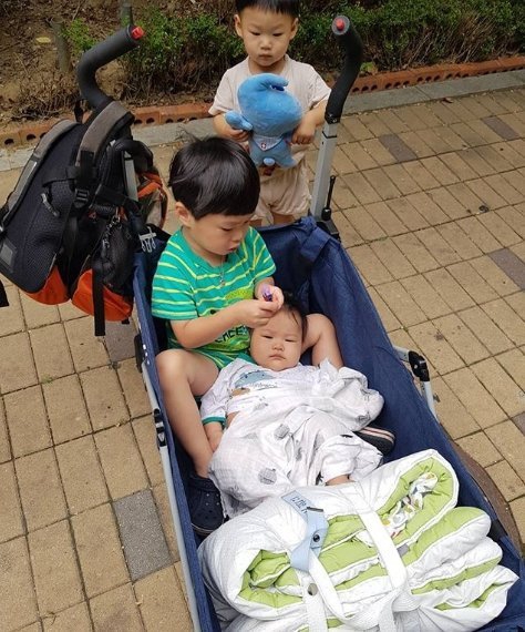 정주리는 7월 15일 개인 인스타그램에 세 아들 도윤 도원 도하 군 사진을 게재했다.
