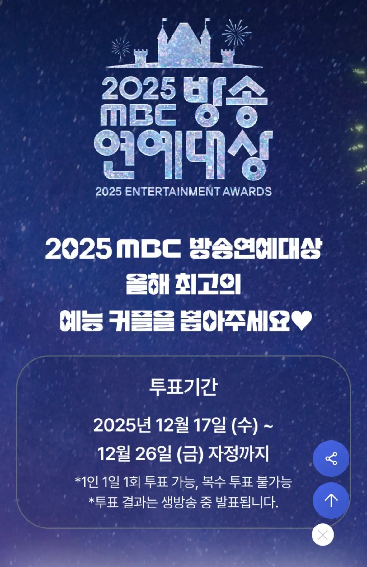 2025 MBC 연예대상 베스트 커플상 후보 공개