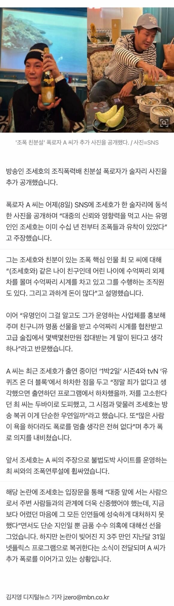 조세호, 수억 시계·접대 받아"조폭 유착설, 추가 사진 공개
