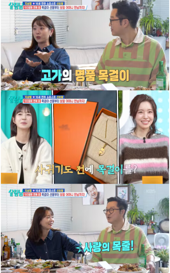 이날 방송에서는 지상렬의 ‘플렉스’ 미담도 공개됐다. 최양락이 “선물은 해줬느냐”고 묻자, 신보람은 “사귀기 전부터 명품 목걸이를 선물받았고, 어머니 선물까지 챙겨줬다”고 밝혀 모두를 놀라게 했다. 관계 초반부터 진정성을 보여줬다는 설명이다.
