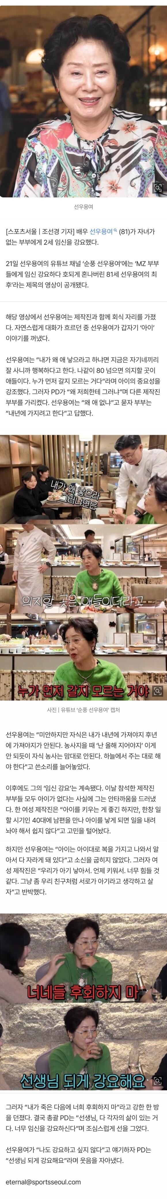 애는 알아서 자란다 선우용여, 제작진에 임신 강요각자 삶 있다 제지