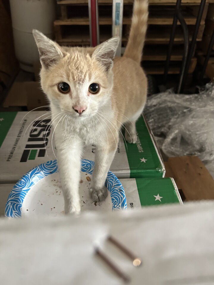 오늘 갑자기 창고에 나타난 아기 고양이, 대략 4-5 개월 정도 된것 같습니다.