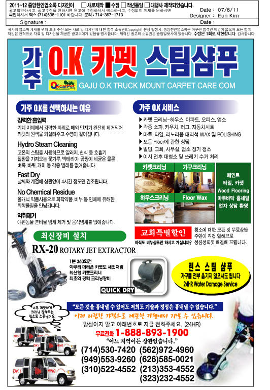 OK청소카펫,러그,나무바닥,소파,식당타일WAX, 고온 스팀 샴푸크리닝
