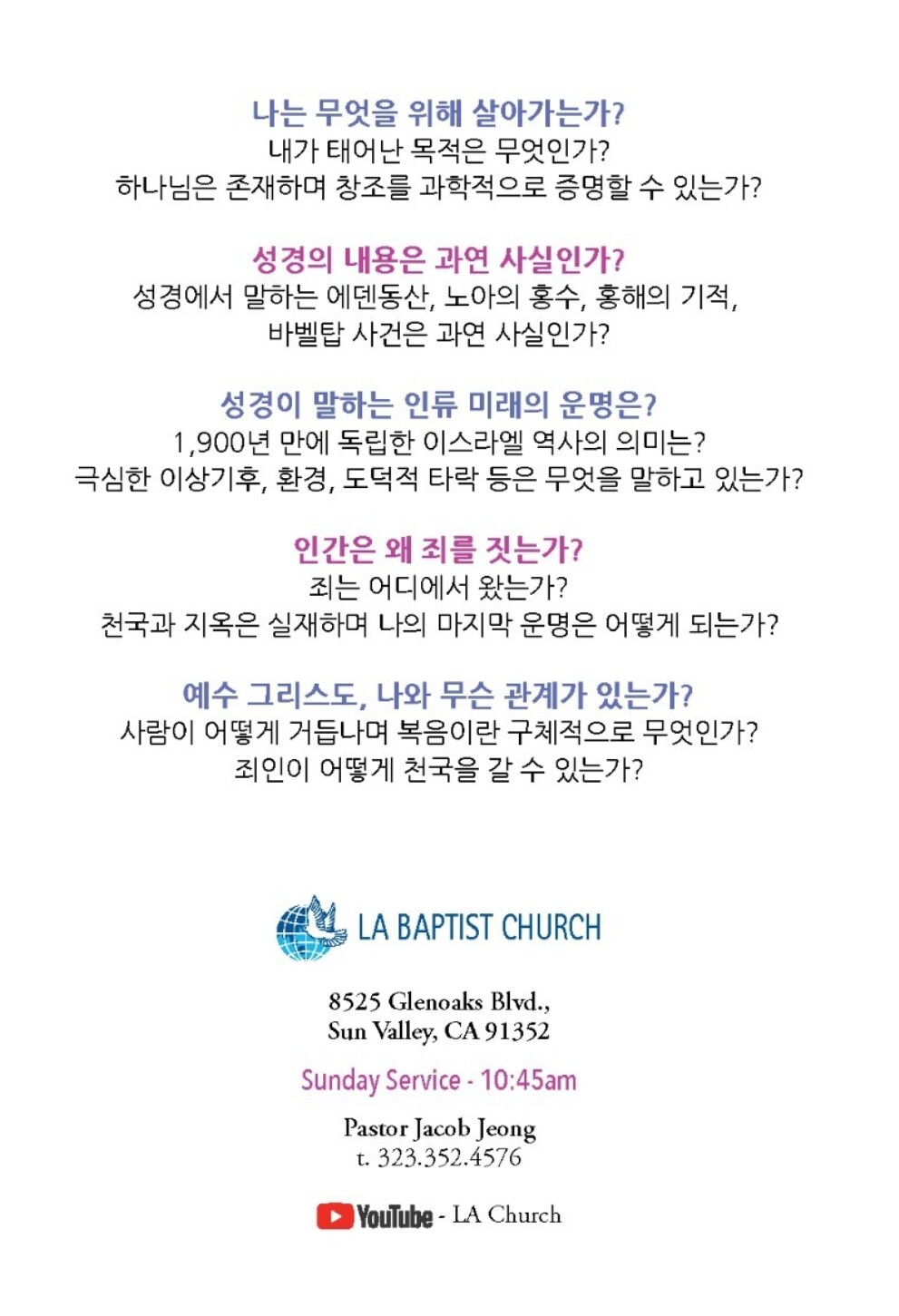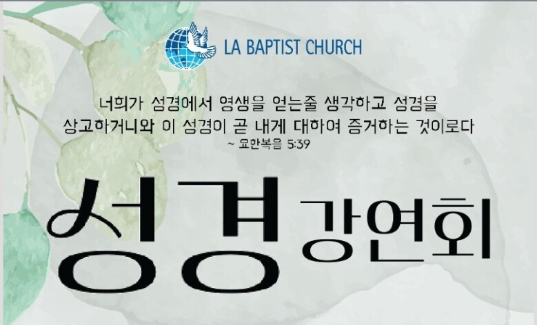 강사 :  Jacob 정성호목사 (LA침례교회 담임목사)