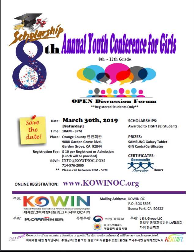 이번달 3월30일 오렌지카운티 한인회관에서 진행됩니다.