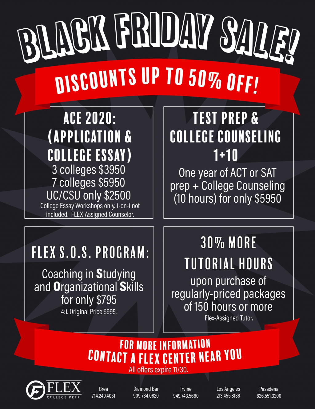 대입 컨설팅 및 각종 시험대비 학원인 Flex College Prep에서 Black Friday Promotion 행사가 있습니다.