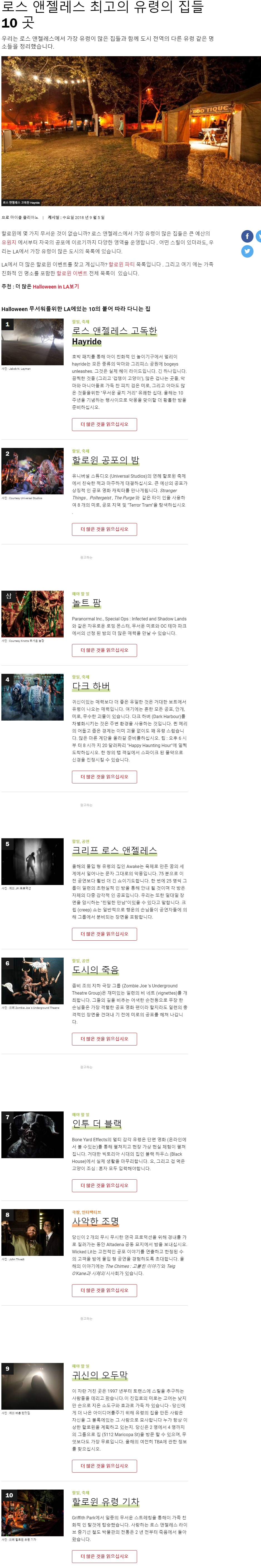로스 앤젤레스 최고의 유령의 집들 10 곳