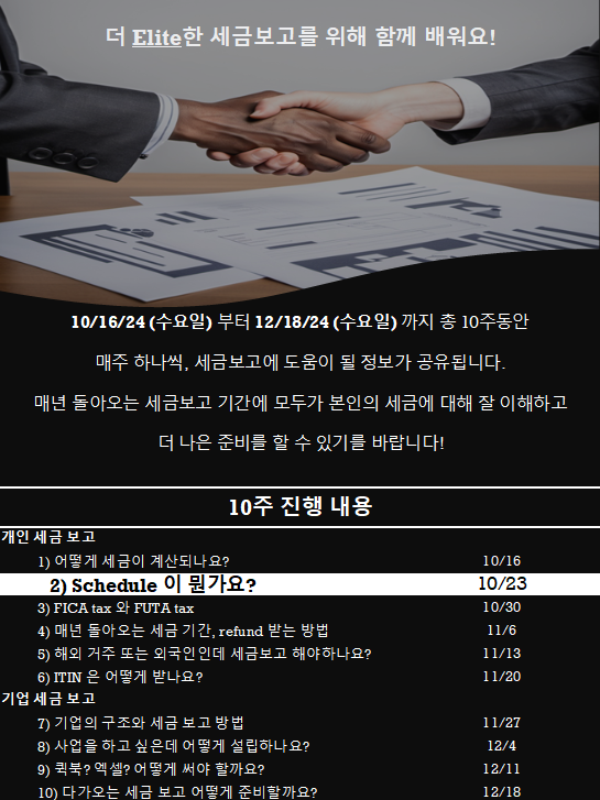 세금보고에서 보이는 Schedule 이라는 게 무엇인지에 대한 설명입니다.