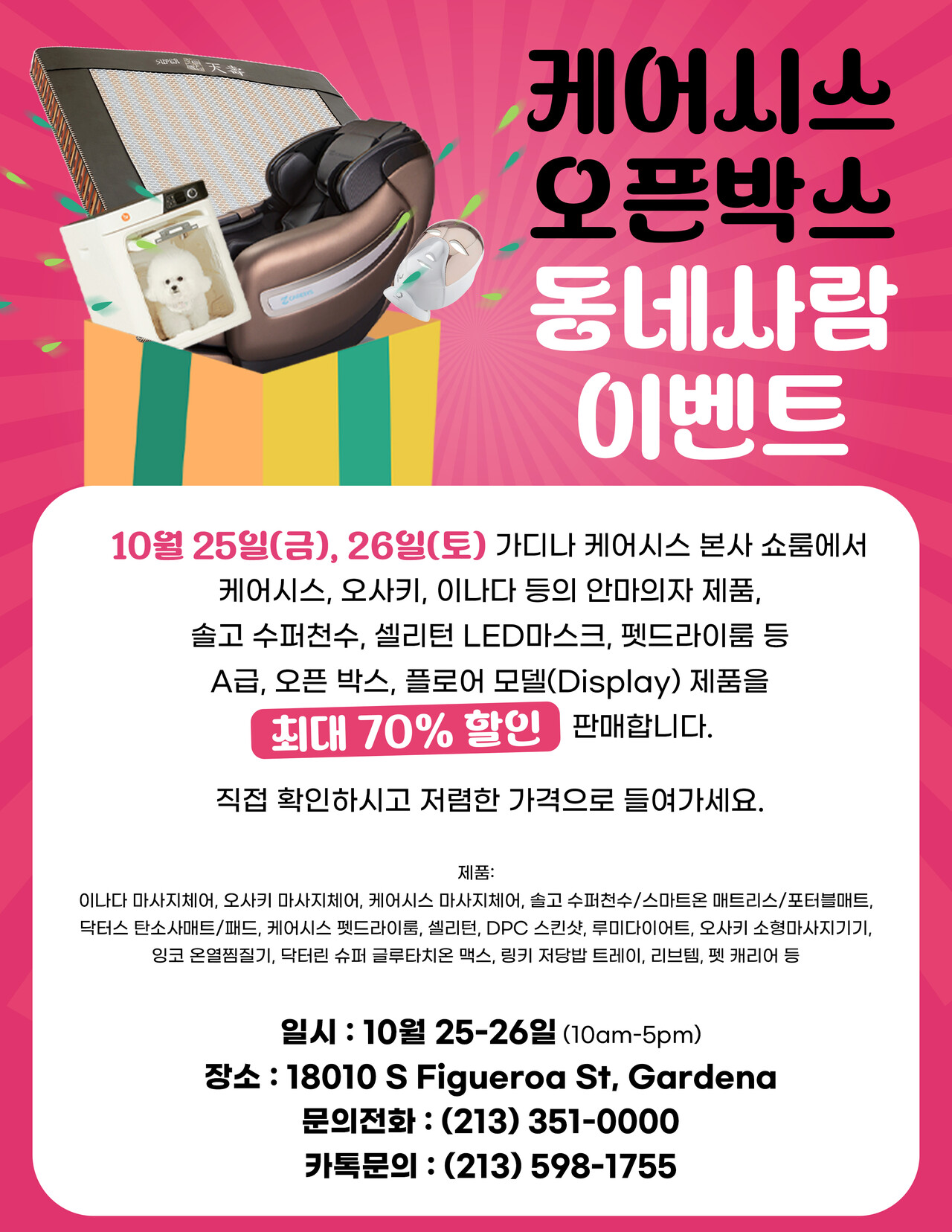 케어시스 가디나 쇼룸에서 오픈박스 세일을 실시합니다.