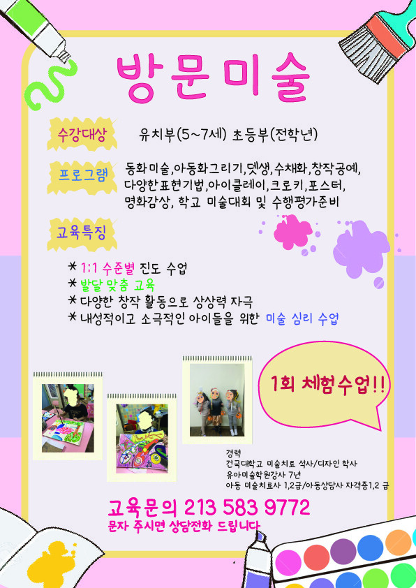 방문 미술과외 학생 구합니다