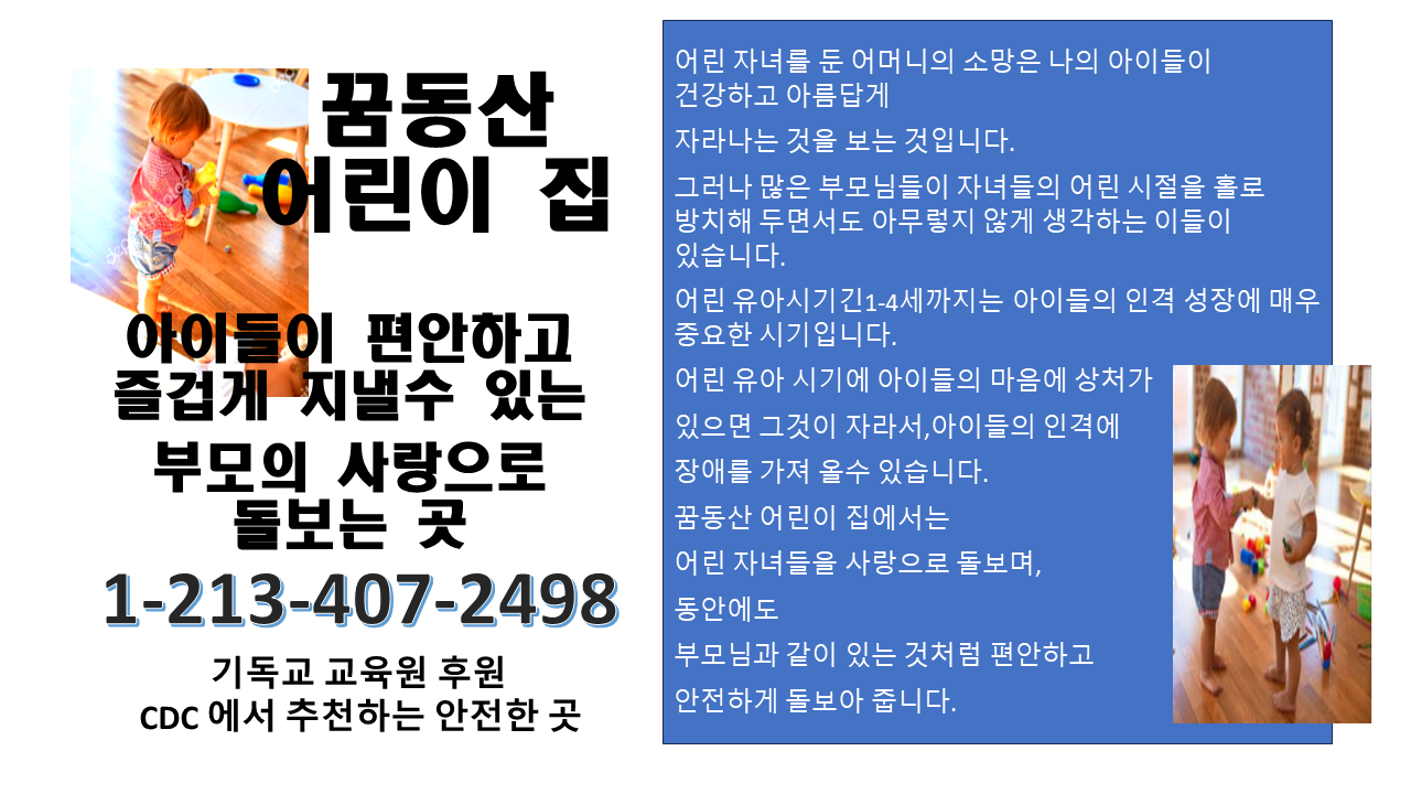 안전한 곳에서 사랑으로 돌볼수 있는 저희 꿈동산 어린이집에 맡겨 주십시요.