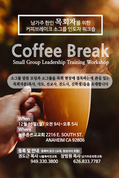 남가주 한인 목회자를 위한 커피브레이크 워크숍이 열립니다.