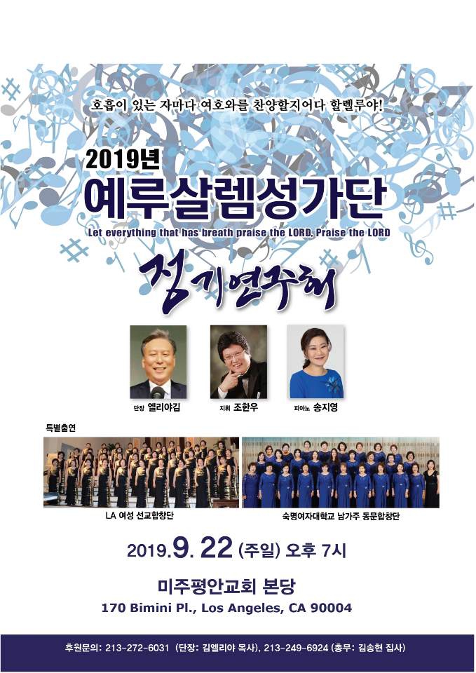 예루살렘 성가단 정기 공연에 초대합니다. 오셔서 함께 은혜받으시길 바랍니다.