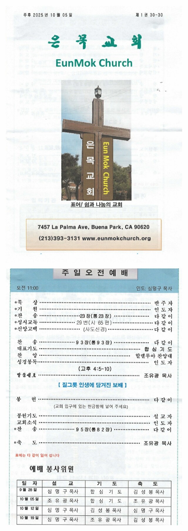 주일 날 오시면 몰 사인판에는 은목 교회로 표시되어 있고,