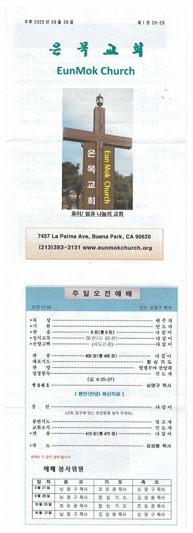 O C 지역에서 예배를 드리며 섬길 교회를 찾고 계신 성도님들도