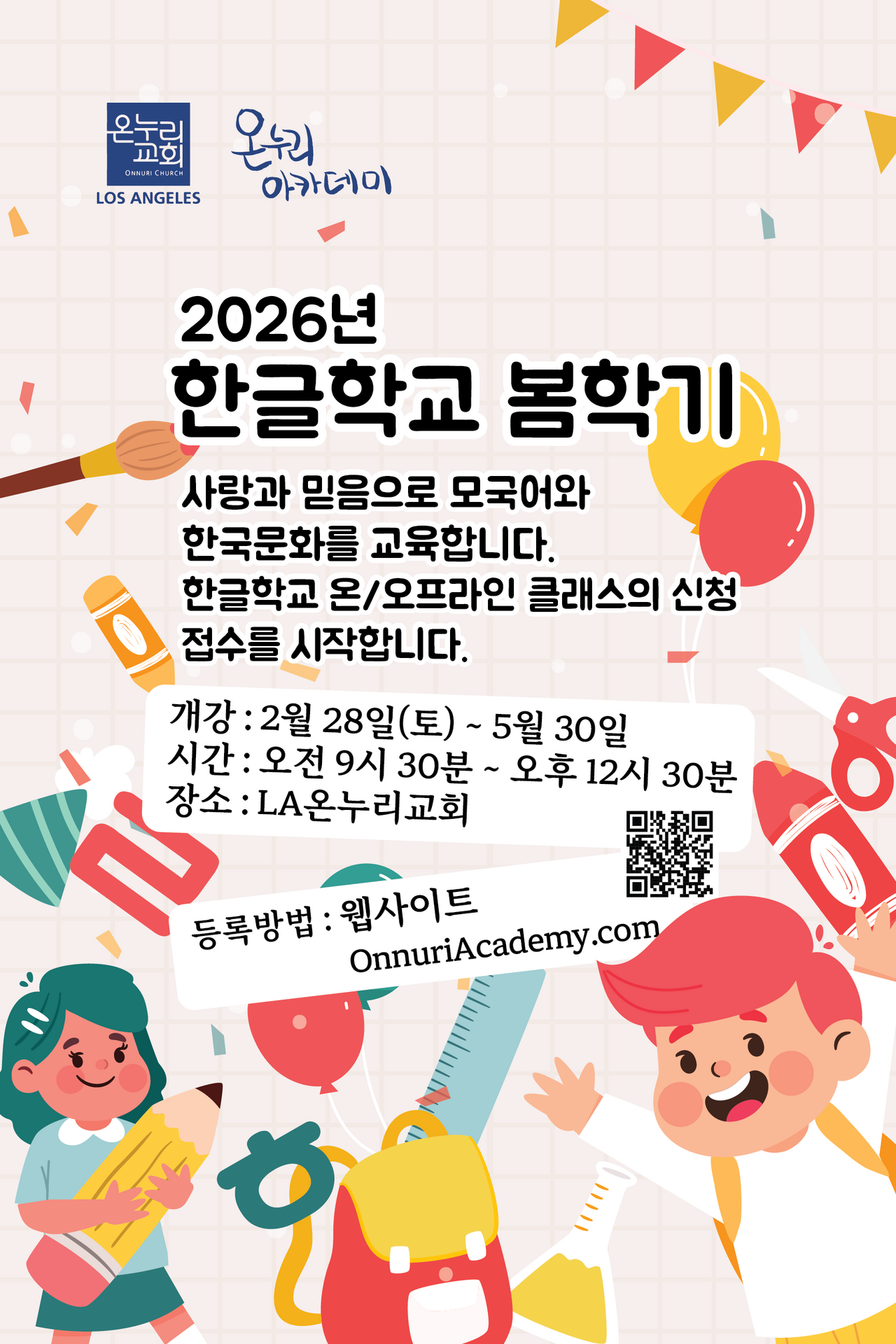 26년 봄학기 한글학교의 등록이 오픈되었습니다.