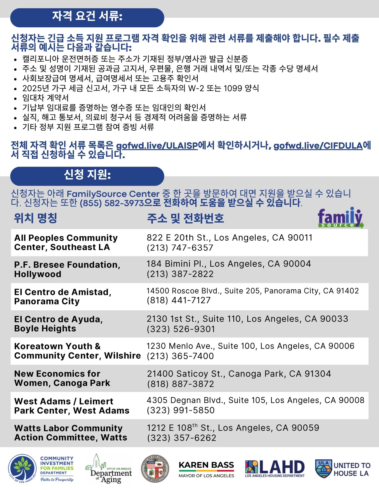 City of Los Angeles Community Investment for Families Department에서 United to House LA Emergency Income Support Program (ULA ISP) 신청을 시작합니다!