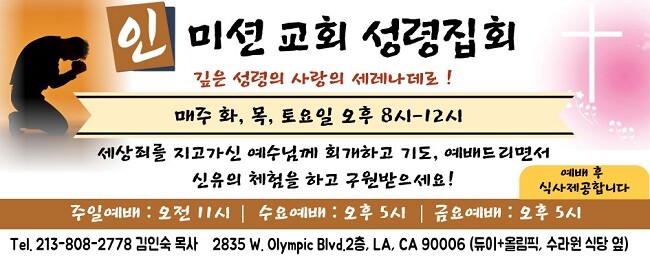 .문의: 213-808-2778 김인숙목사