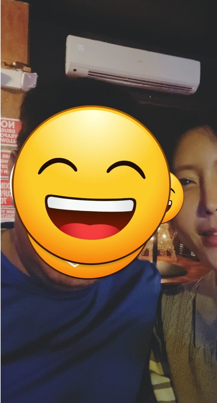 자기 사진은 스티커로 가리고 와이프 사진을 주었습니다.