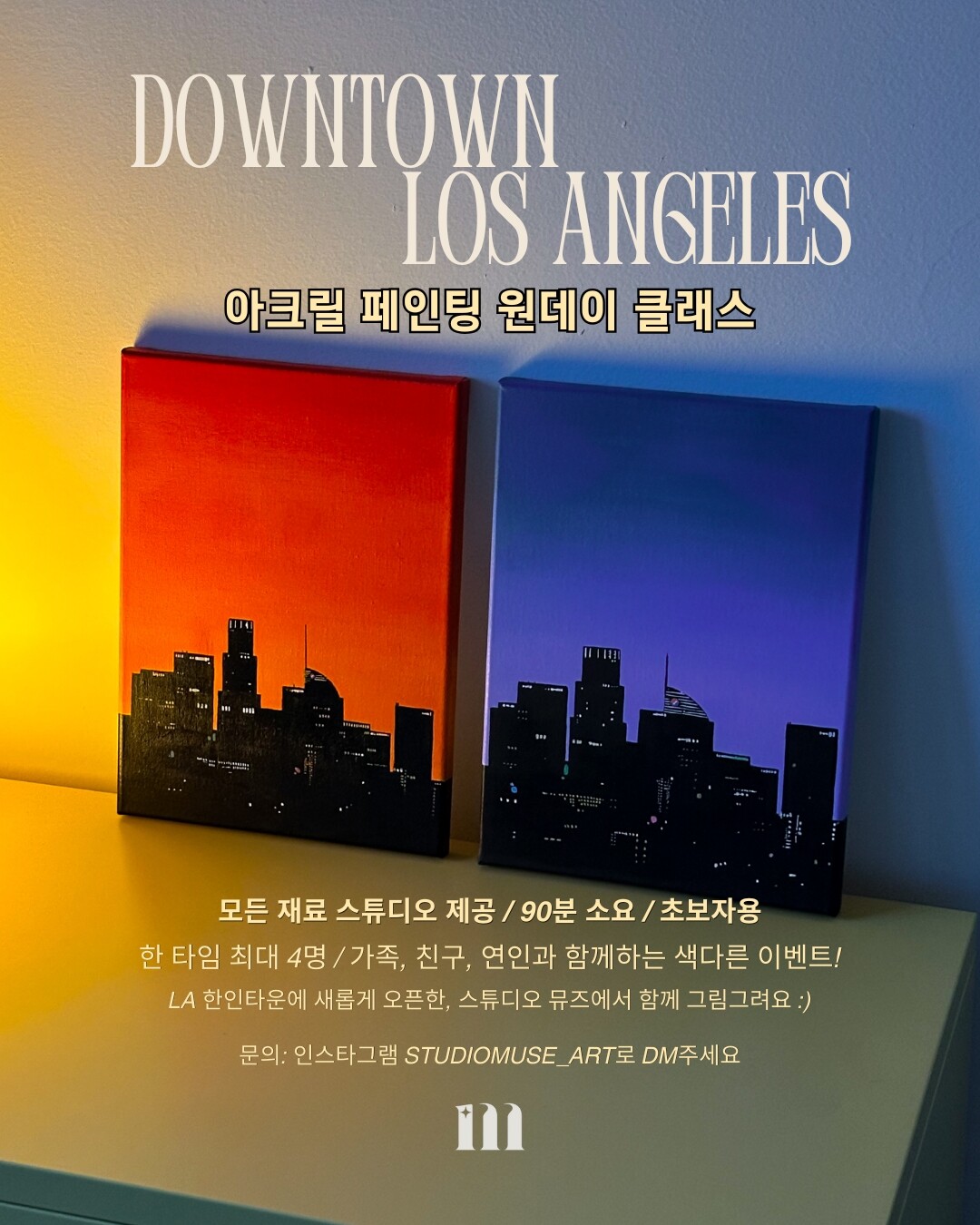 스튜디오 뮤즈에 오셔서 Downtown LA의 시티뷰를 한 폭의 캔버스에 담아가세요.