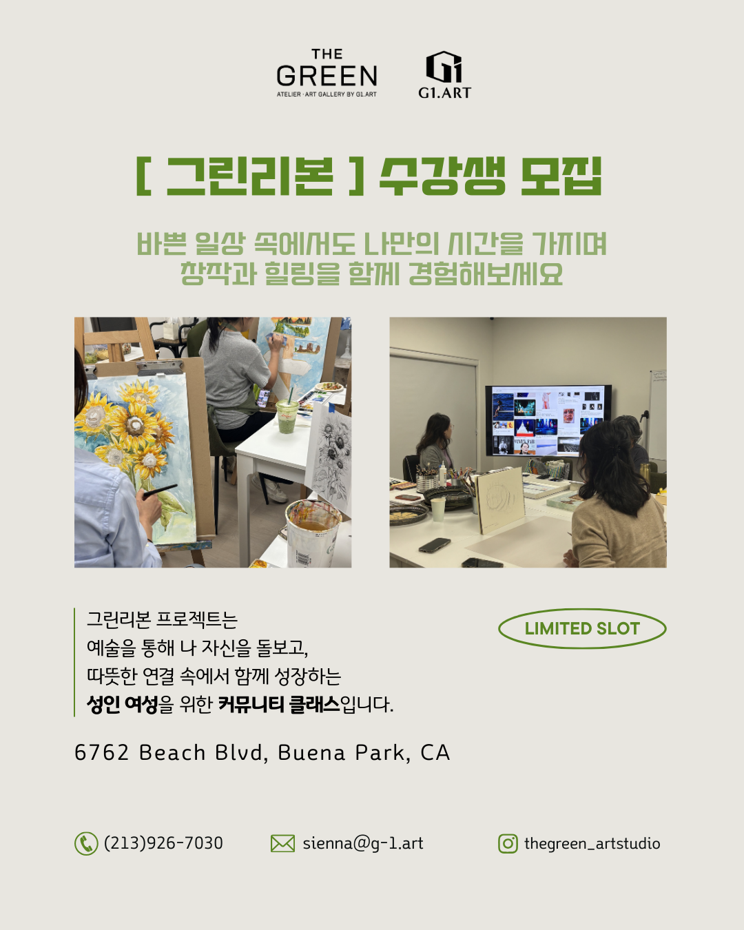 신청은 https://www.instagram.com/thegreen_oc/ 프로필 링크로 부탁드립니다.