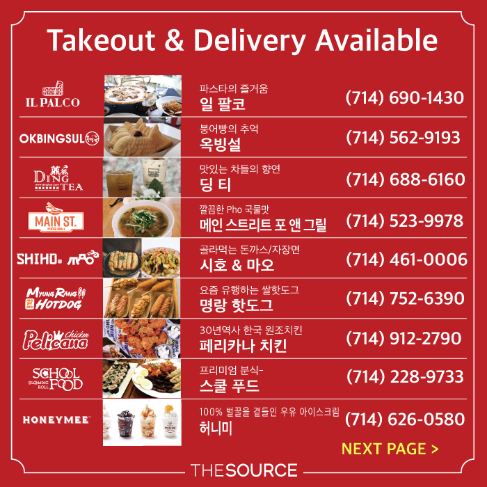 [OC지역] 투고 & 배달 전화번호부   [Orange County] To-Go & Delivery Directory