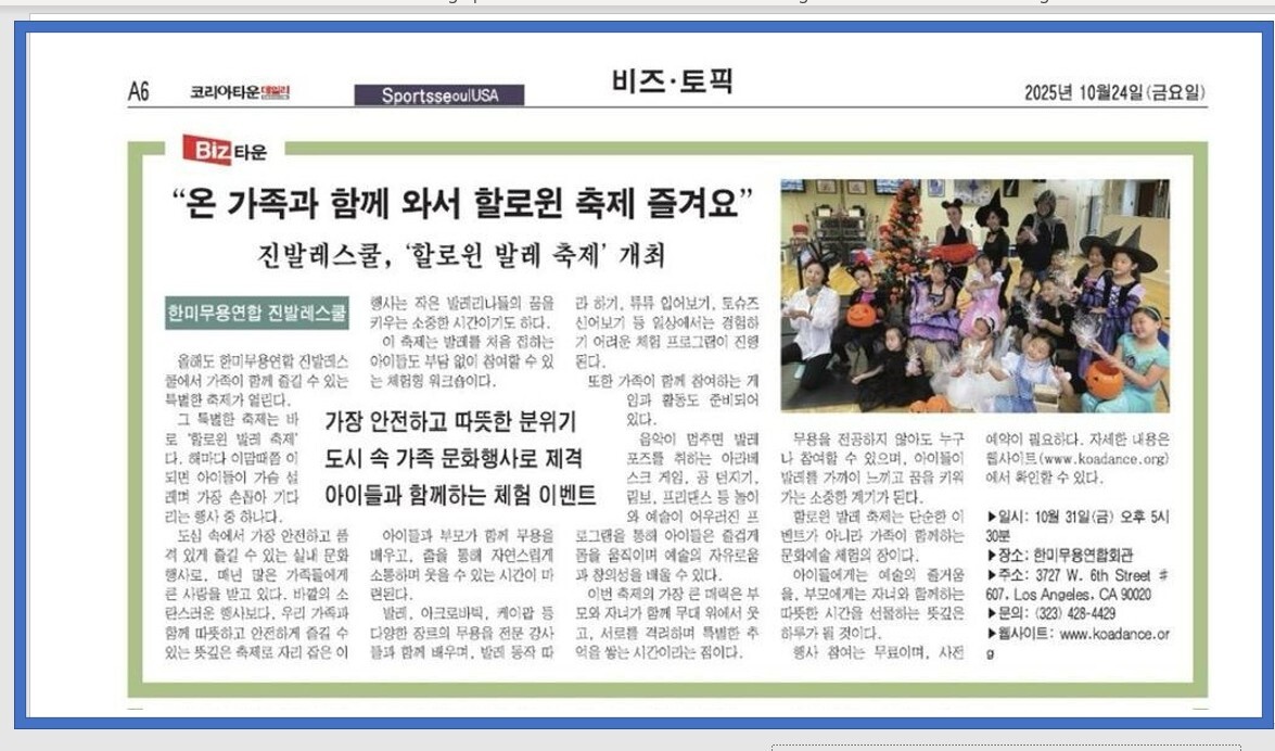 #한미무용연합 #진발레스쿨 #KOADanceFederation #JeanBalletSchool #핼로윈발레축제 #시니어발레리나 #드라마마임 #발레스페셜클래스 #가족예술축제 #진최의무용이야기