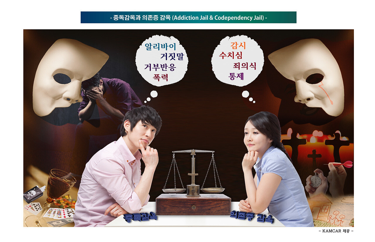 무엇에 중독되든 모든 중독자들은 처음부터 “중독감옥(Addiction jail)”을 만들기 시작한다. 알리바이, 합리화, 거짓말, 폭력, 자가 연민 등으로 4개의 벽과 지붕을 만들고, 거부반응으로 안에서만 열 수 있는 방탄유리 문을 설치한 다음에 중독자 혼자서만 문 열쇠를 움켜쥐고 있어서 부모나 배우자 또는 자녀들까지 아무도 밖에서 들어오지 못하게 만든다. 가정에 중독된 사람이 2명이면 중독감옥은 2개로 늘어나게 된다. 그래서 부모들의 훈계나 주위사람들이 아무리 이해를 시켜도 그리고 중독된 본인의 결심이나 노력만으로는 중독함정에서 벗어날 수 없는 것이다.